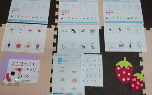 タブレットが使えない未就学児にはプリントを準備し、療育を行っております。